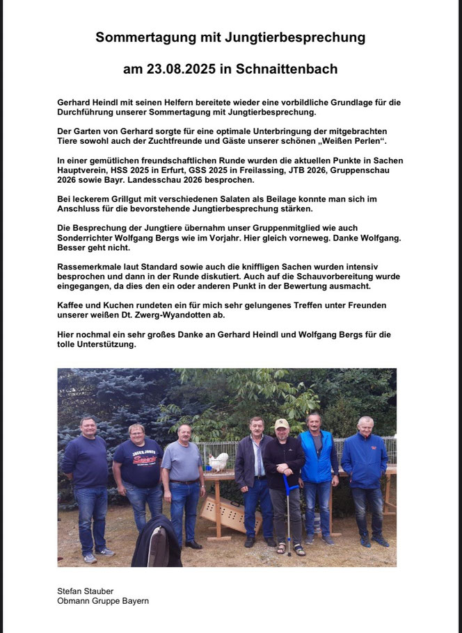 Es sind insgesamt 200 weisse Zwerg-Wyandotten in Erfurt gemeldet. 186 bei den Senioren, 10 in der Jugendgruppe und 4 Zwerg-Wyandotten amerikanischen Typs. Das ist ein sehr gutes Meldeergebnis !!!
